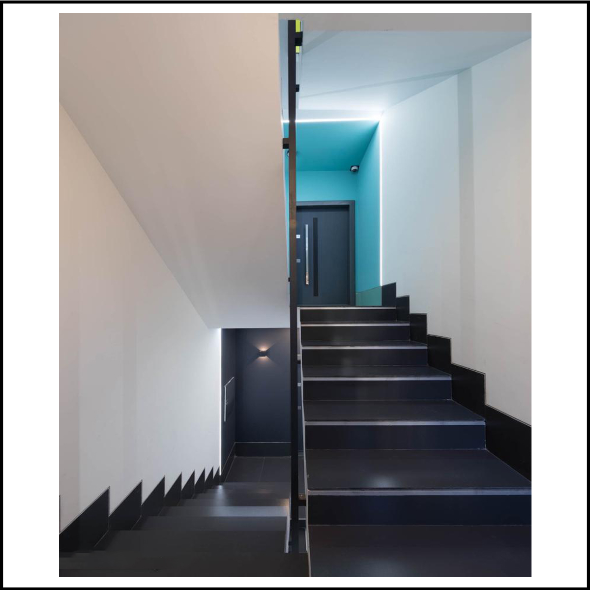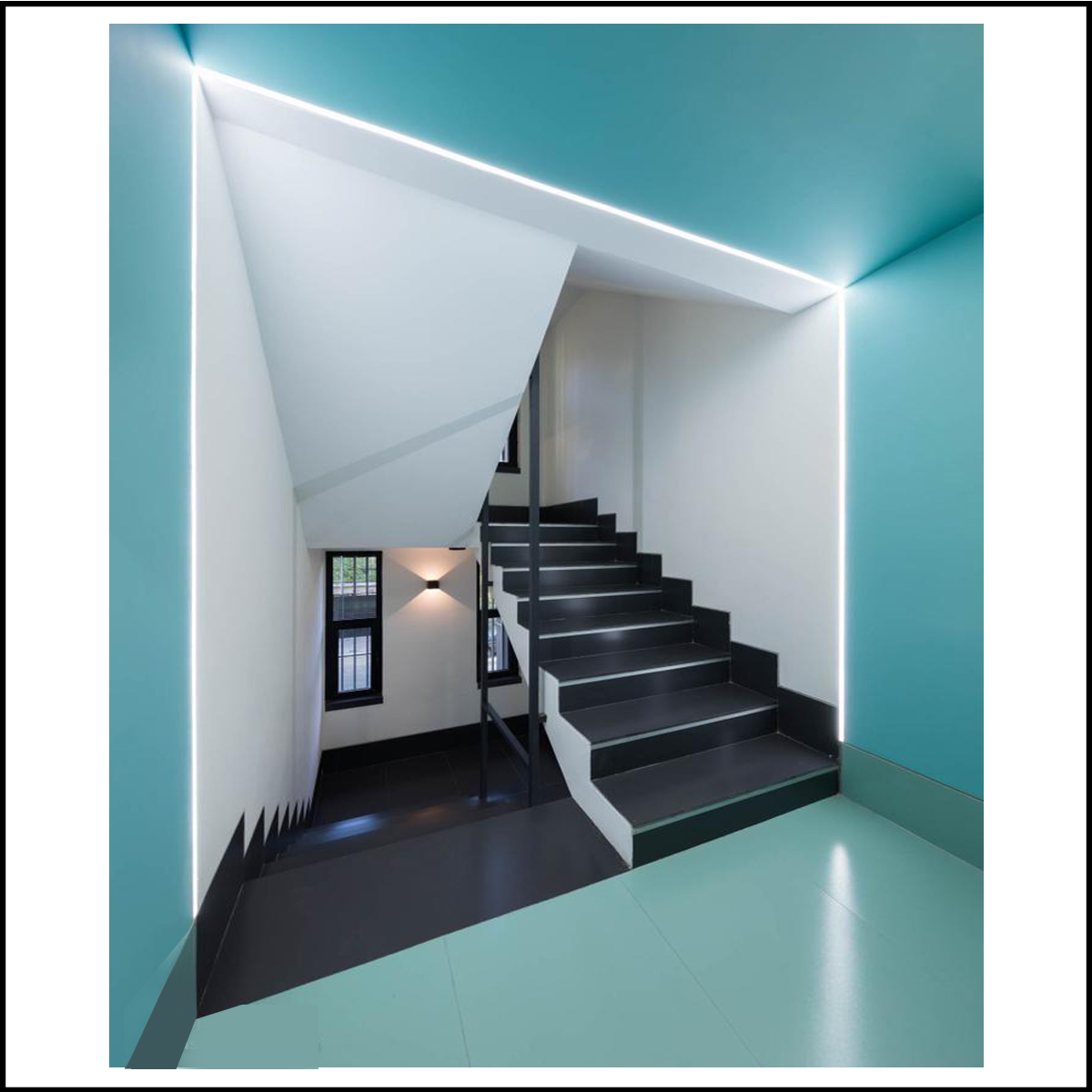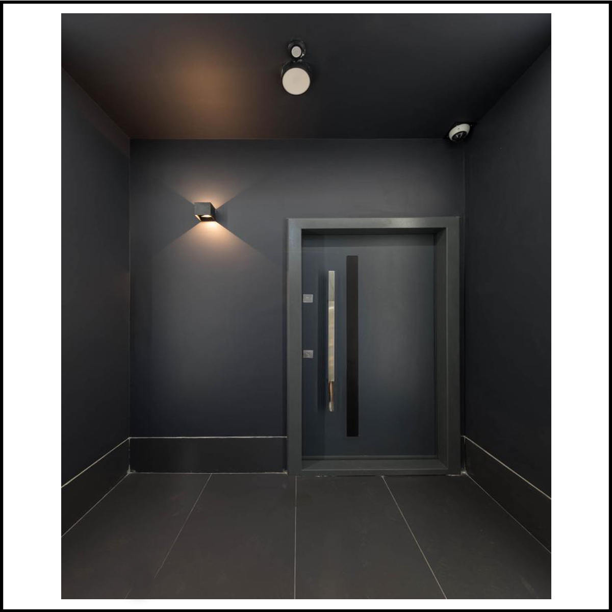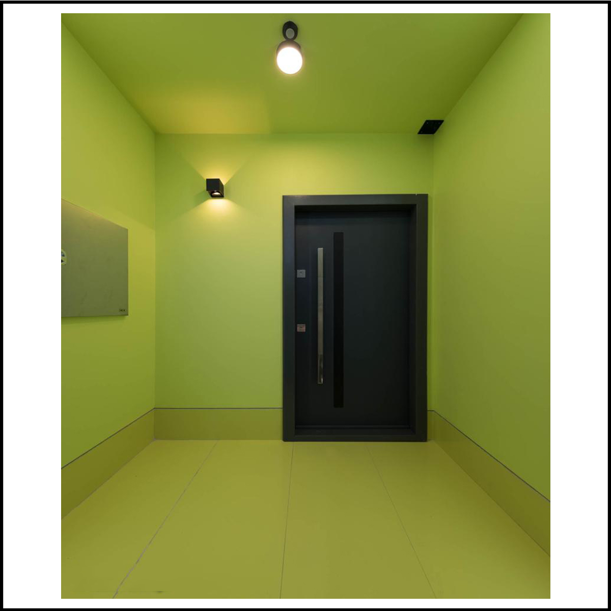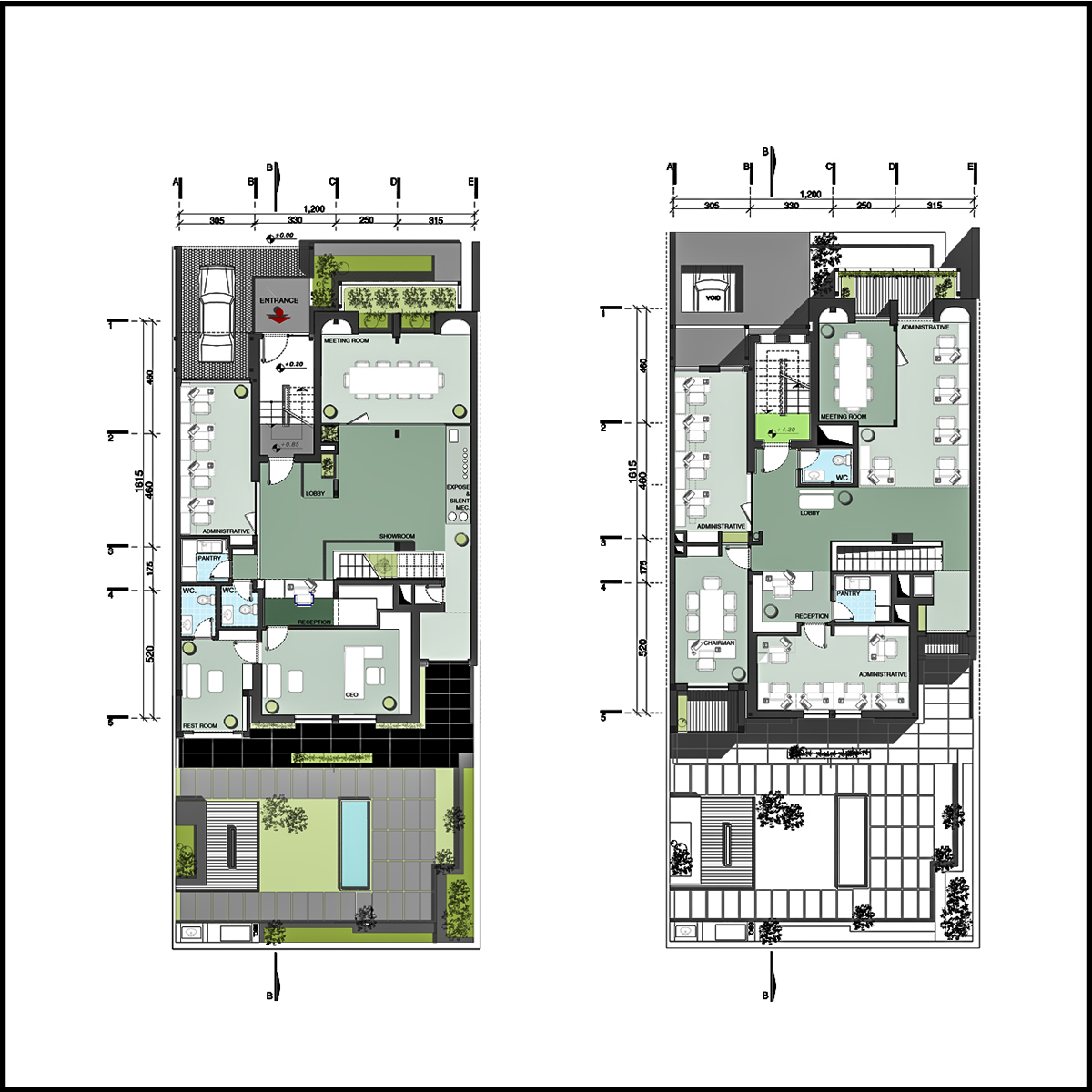 از طرفی در طراحی نما با در نظر گرفتن کاربری صنعتی شرکت در زمینه تولید دستگاه های تهویه و توجه به حفظ نمای ساختمان پیش از باز سازی پوسته ای از جنس لوور فلزی در نما تعبیه شد که در حین حفظ نمای موجود ساختمان امنیت ساختمان را فراهم می کرد