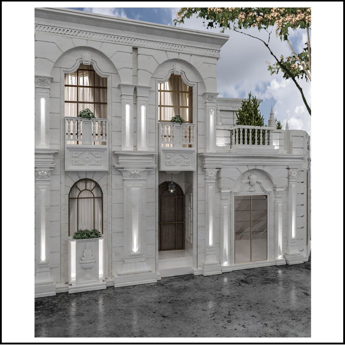 ساختمان ویلایی کرمان به خواسته کارفرما دارای نمای کلاسیک بوده و سعی بر آن شده که در طراحی نور پردازی و دیتیل های اجرایی ارائه شود .
